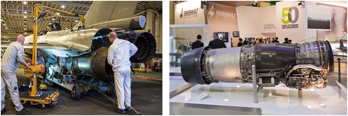 Engine :  The “Rafale Fighter” is a twin-engine aircraft which  is fitted with two Snecma M88 engines. Each Snecma M88 engine is capable of producing up to 50 kN of dry thrust and 75 kN  with afterburners.